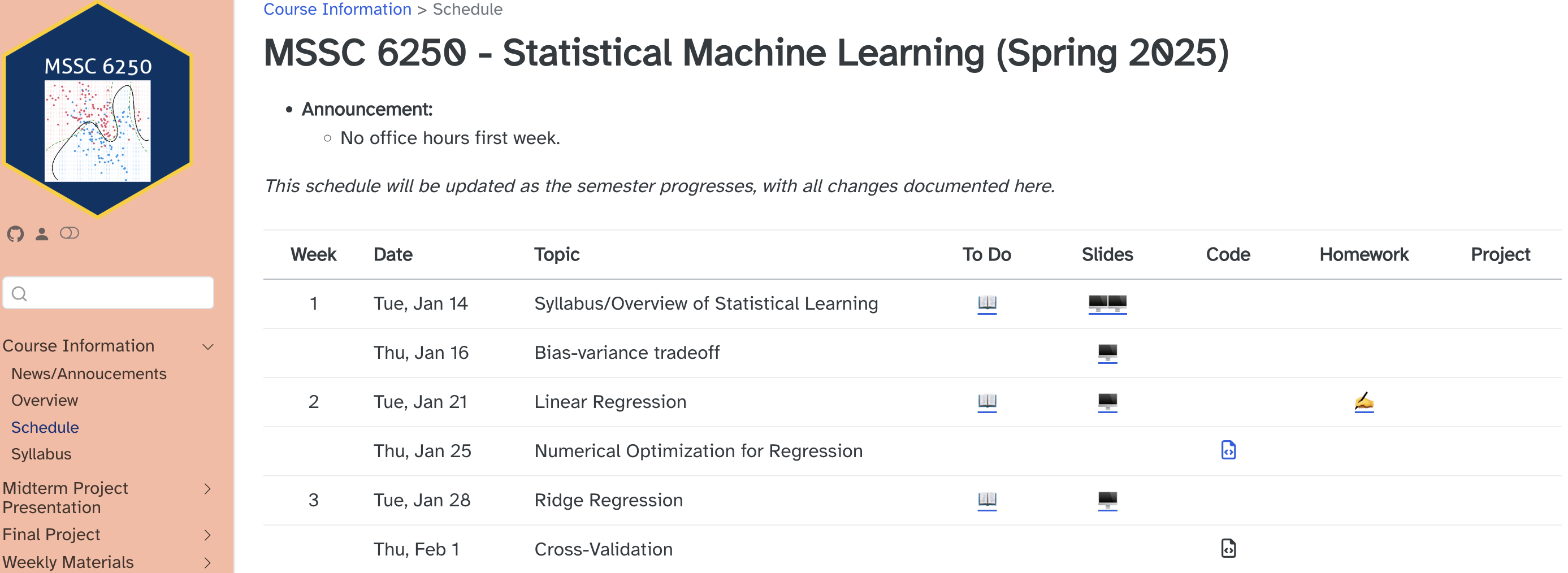 On bulletin: MATH 4720 (Intro to Statistics), MATH 3100 (Linear Algebra) and/or MSSC 5780 (Regression Analysis)