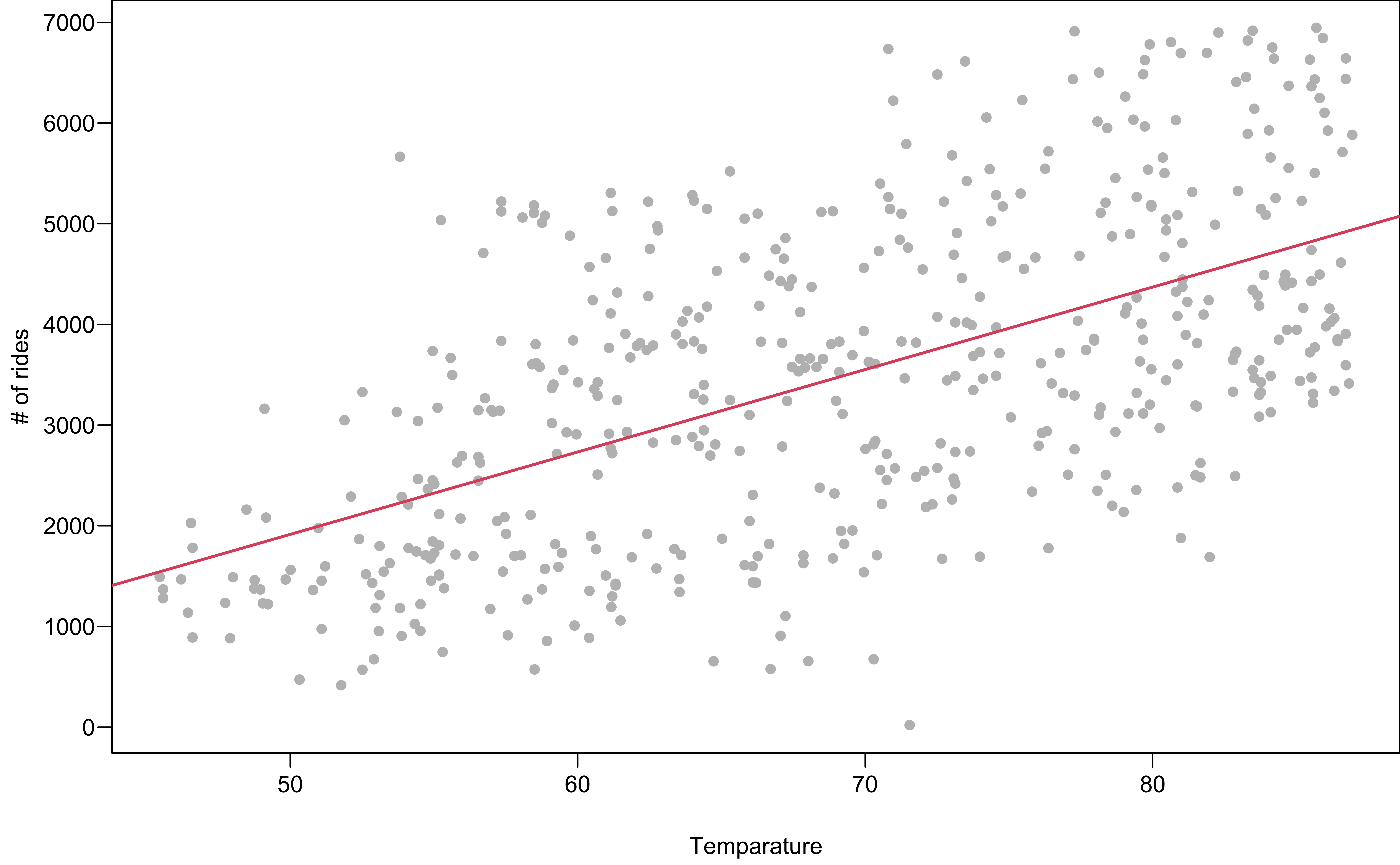 Update our prior understanding of the relationship between ridership and temperature using data information provided by likelihood.