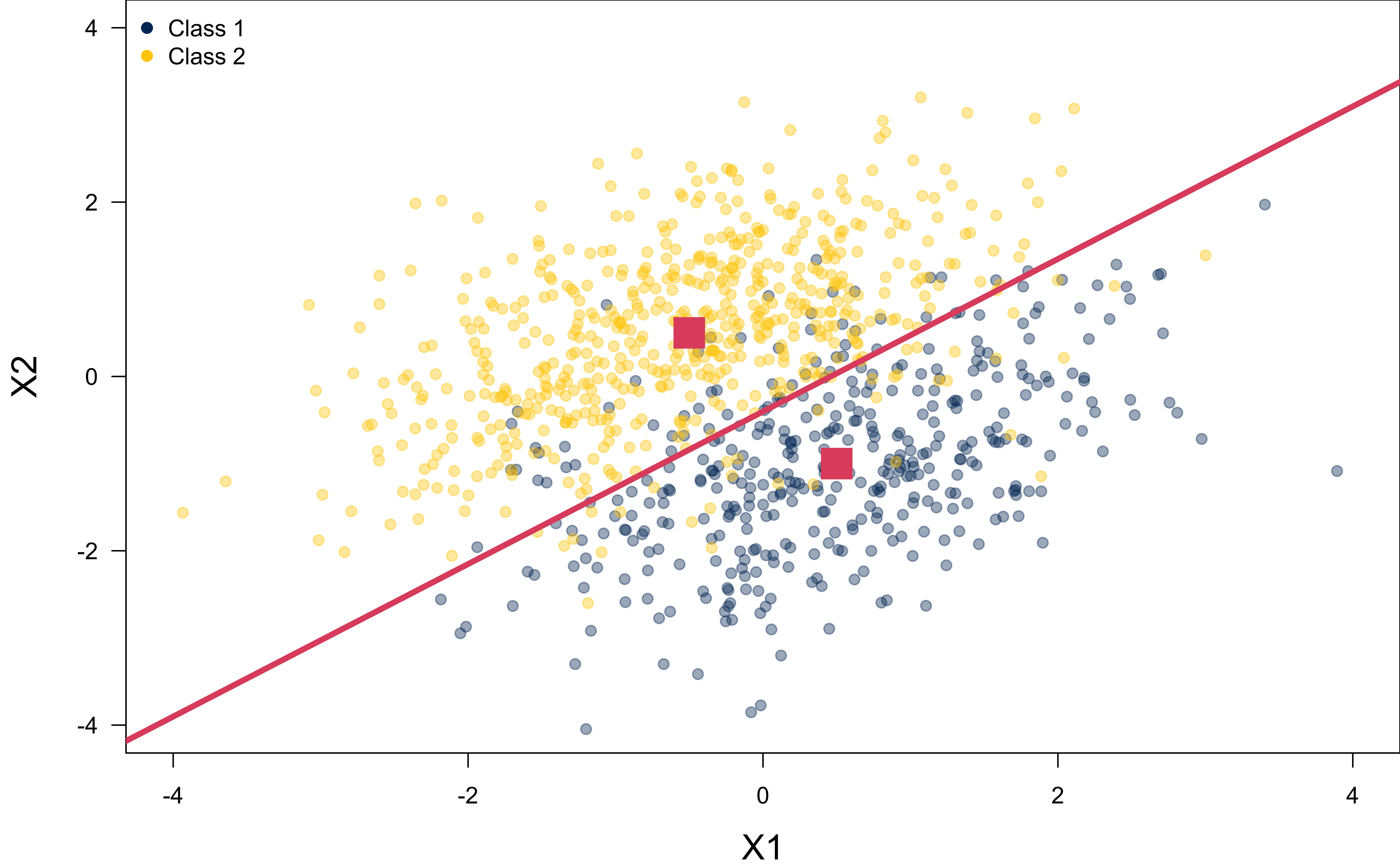 Centroids: \(\widehat{\boldsymbol{\mu}}_k = \frac{1}{n_k} \sum_{i: \,y_i = k} \mathbf{x}_i\)