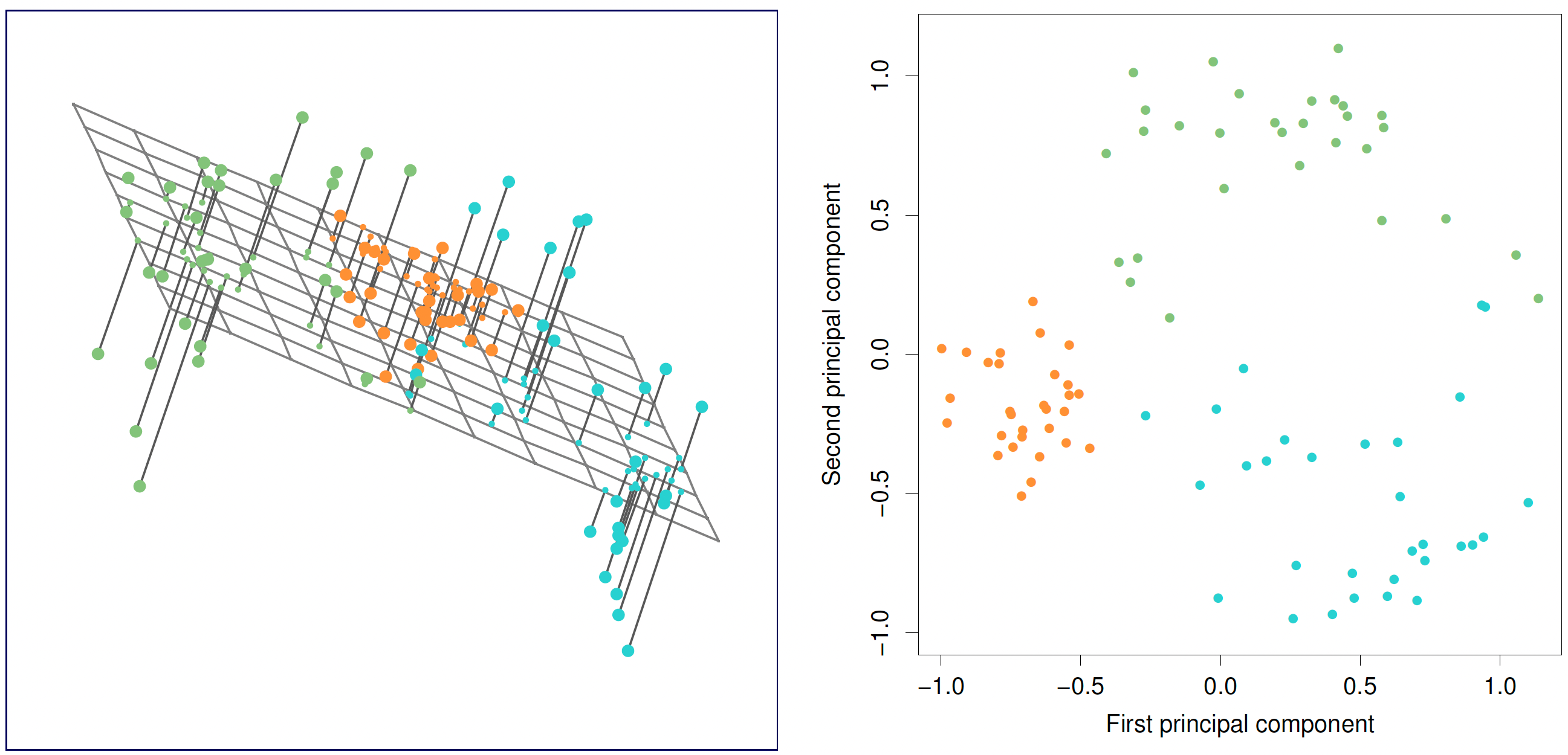 \[Z_k = \phi_{1k}X_1 + \phi_{2k}X_2 + \dots + \phi_{pk}X_p,\] where \(\sum_{j=1}^p\phi_{jk}^2=1\).