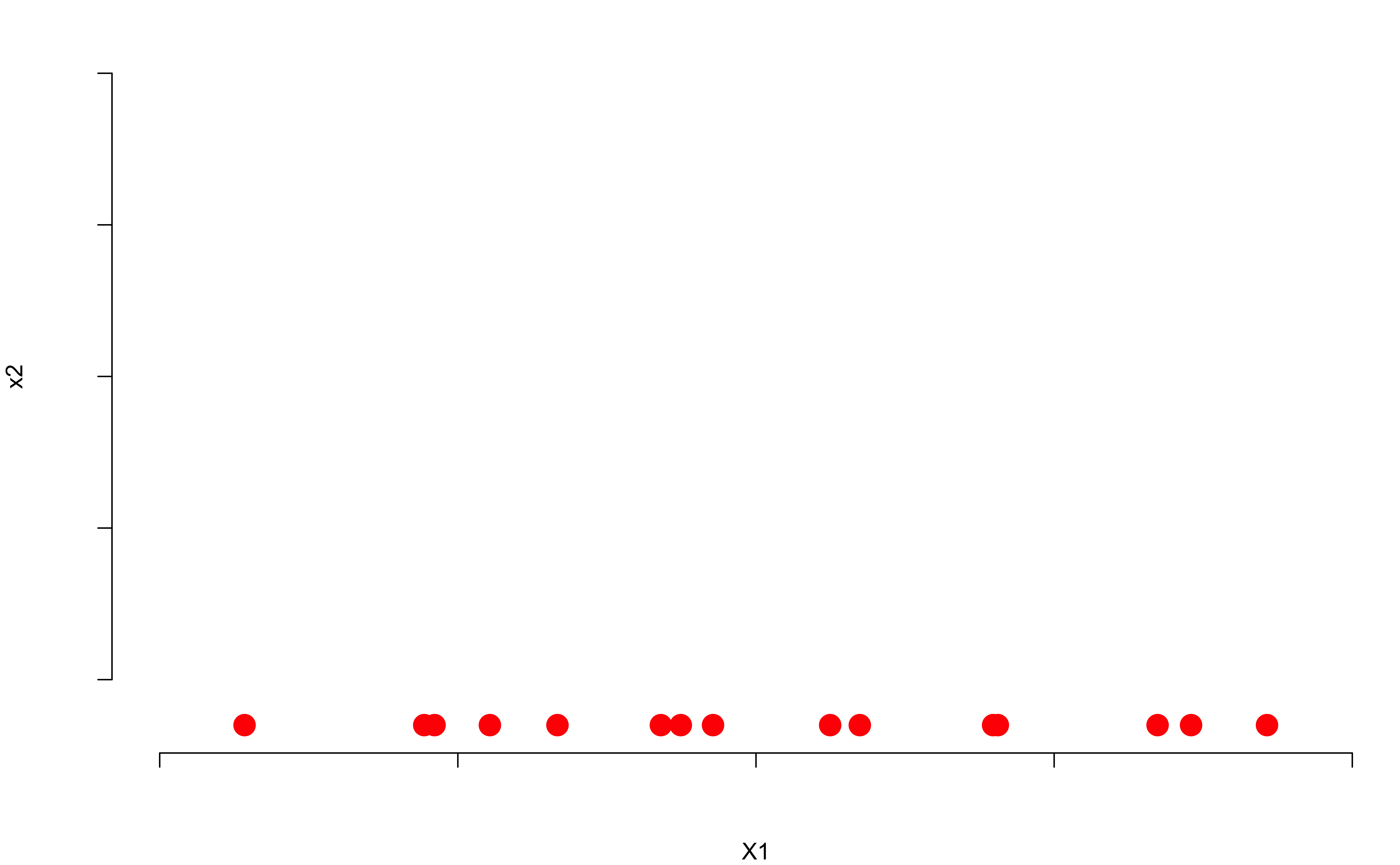 Use two created variables to represent all \(p\) variables, and make a scatter plot of the two created variables to learn what our observations look like as if they lived in the high dimensional space.