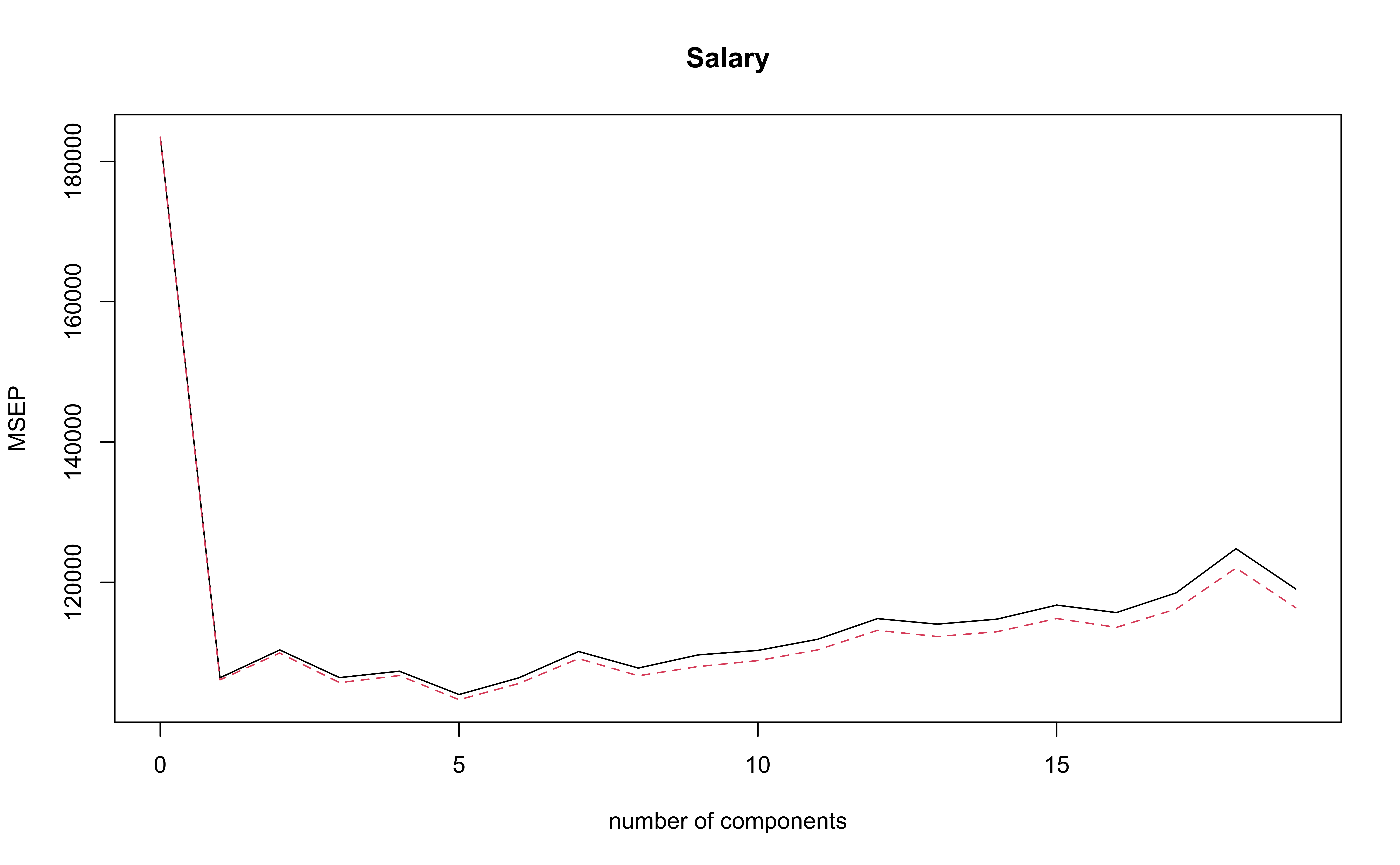 pcr.fit <- pcr(Salary ~ ., data = Hitters,